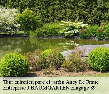 Grâce aux soins et à l’attention particulière que notre entreprise de paysagiste Entreprise J.BAUMGARTEN Elagage 89 apporte sur chacune de ses réalisations, elle restera le compagnon indispensable et le partenaire incontournable en matière d’entretien de parc et jardin à Ancy Le Franc 89160. Des techniques bien élaborées, des interventions rapides et sur-mesure, des conseils d’experts, des accompagnements personnalisés, des tarifs défiant toute concurrence… autant de privilèges que nous mettons au profit de nos clientèles pour leur grande satisfaction et pour le bien-être de leur jardin, potager, patrimoine arboré et parc à Ancy Le Franc.